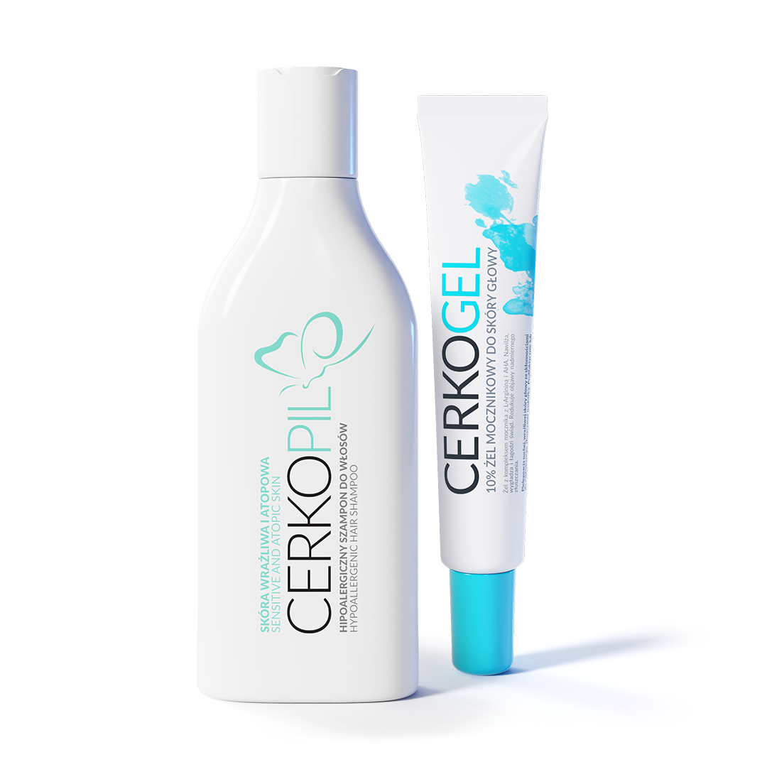 Zestaw nawilżenie skóry głowy to łagodna pielęgnacja dla skóry suchej i wrażliwej. Nawilżający żel mocznikowy Cerkogel idealnie sprawdzi się po zabiegach fryzjerskich, kontakcie z woda morską i chlorowaną. Wygładza, nawilża i wykazuje delikatne działanie złuszczające. Bestsellerowy szampon Cerkopil zapewnia łagodne oczyszczenie bez naruszania bariery naskórkowej. Łagodzi podrażnienia, wzmacnia i regeneruje włosy.